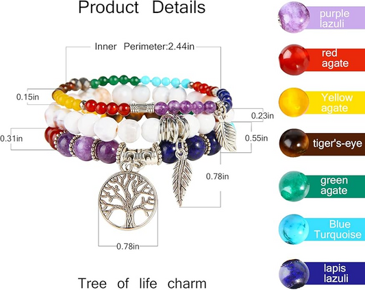 Healing Crystal Beaded Bracelets Set | Tree of Life Yoga Stretch Bracelets for Chakra Balance & Energy