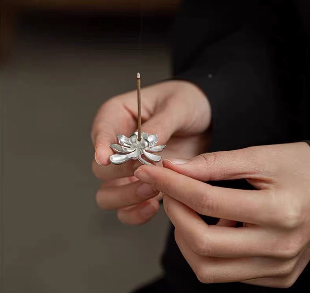 Lotus Incense Burner | Gift-Wrapped | Handmade Silver Brass Incense Holder