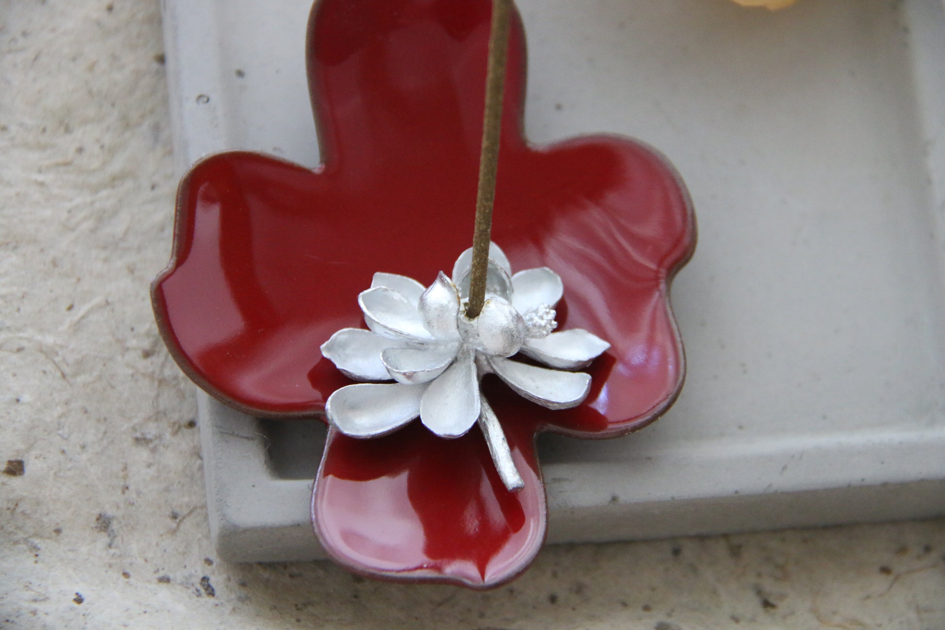 Our Lotus Incense Burner features a handcrafted lotus part made from tin, allowing you to gently adjust its angle to control the incense flow. The detachable lotus piece can be separated from the holding tray for a more minimalist setup, offering versatility while ensuring a delicate and careful handling for optimal use.